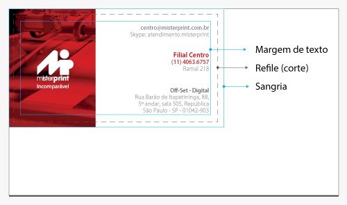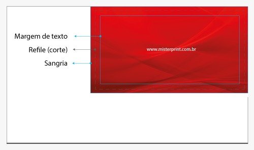 O texto não poderá extrapolar as margens de segurança dos Gabaritos Mister Print, ou este será cortado e não será considerado defeito de produção.